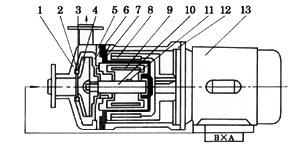 四、CQ型磁力驅(qū)動(dòng)泵結(jié)構(gòu)說明: